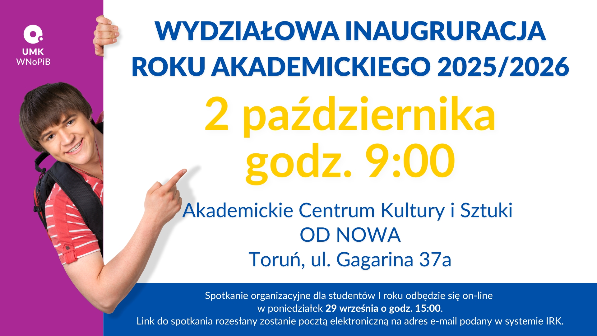 Inauguracja roku akademickiego 2025/2026 na Uniwersytecie Mikołaja Kopernika w Toruniu odbędzie się 1 października o godz. 11:00 w Auli UMK. Uroczystość będzie można śledzić na stronie UMK TV. Nie zabraknie również wydarzeń towarzyszących.