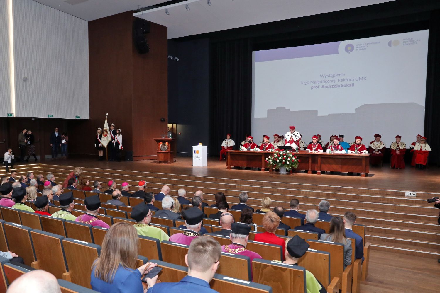 W Auli UMK, gdzie kontynuowane były uroczystości, obecni byli m.in.: szef Kancelarii Prezydenta RP Grażyna Ignaczak-Bandych, minister edukacji i nauki prof. Przemysław Czarnek oraz rektorzy uniwersytetów współorganizujących z UMK Światowy Kongres Kopernikański: prof. Jacek Popiel – rektor UJ, prof. Jerzy Przyborowski – rektor UWM, a także prof. Krzysztof Mikulski – dyrektor Centrum Badań Kopernikańskich UMK.