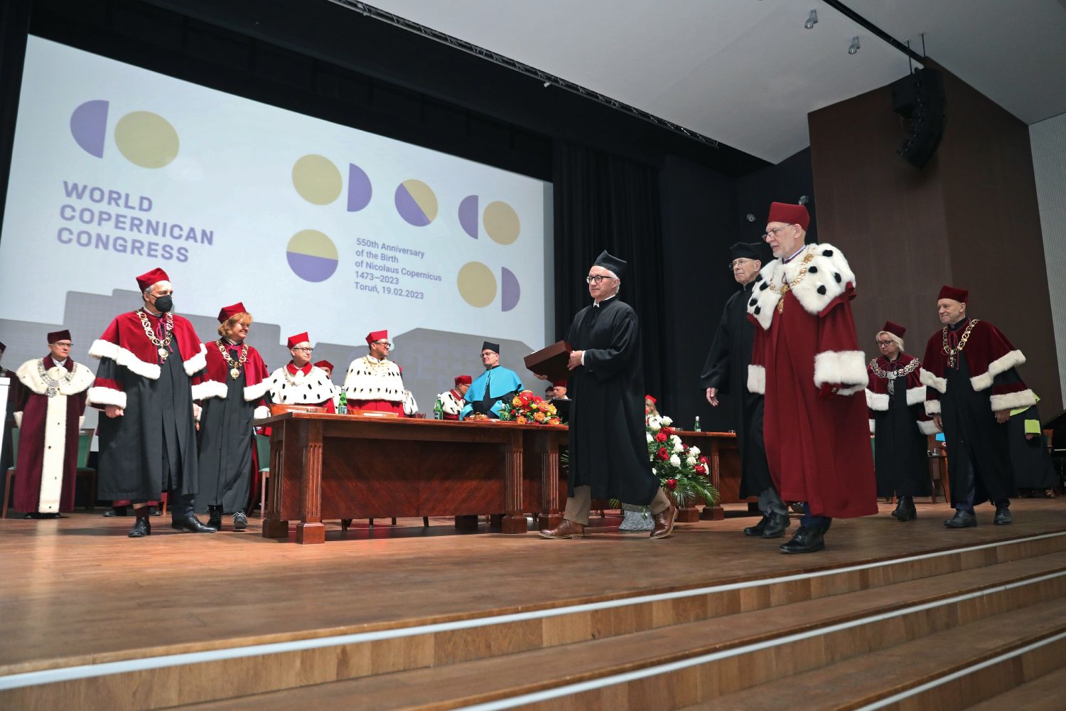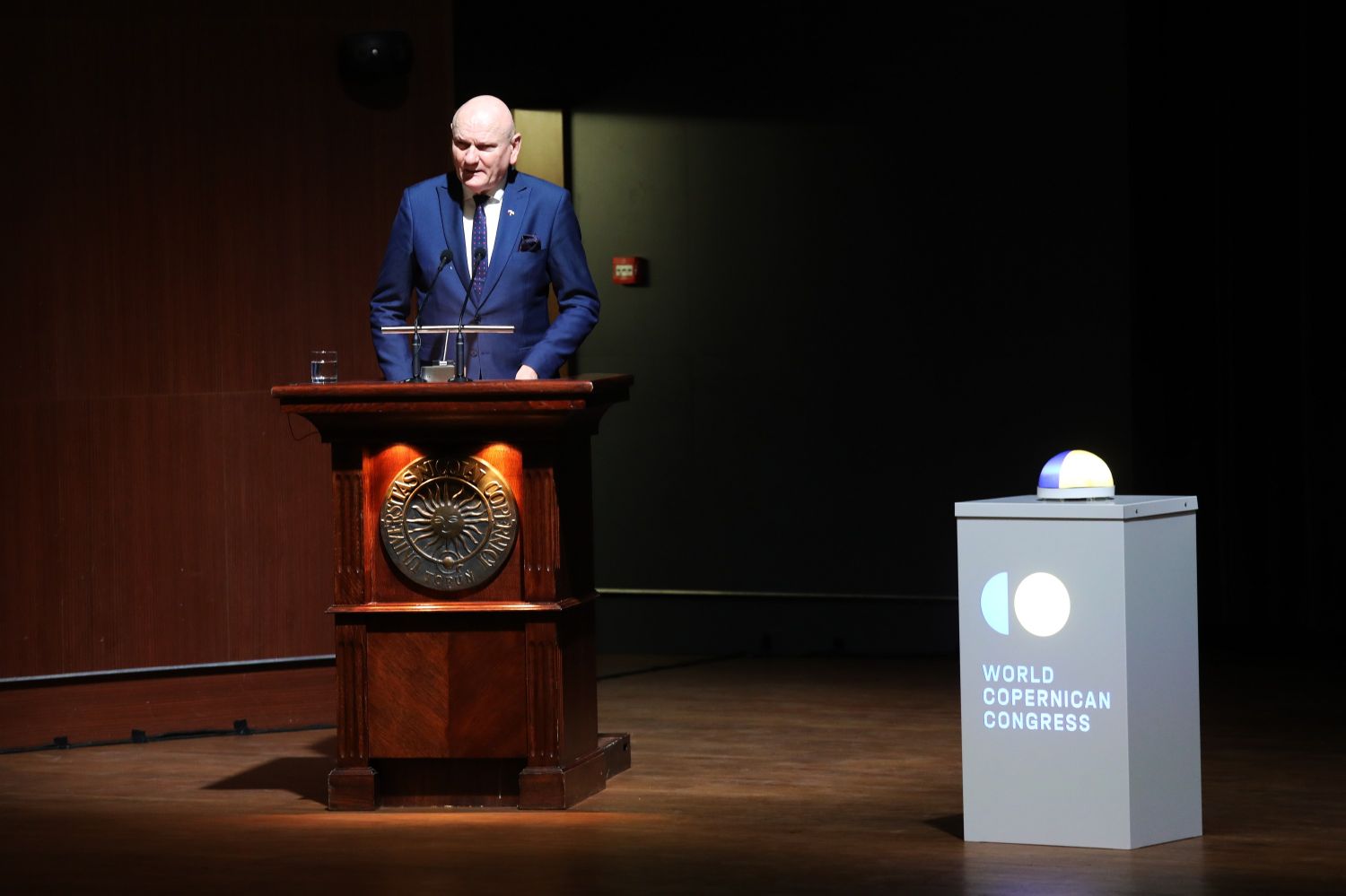 Równo 550 lat temu, tutaj – w Toruniu, urodził się najwybitniejszy polski naukowiec, człowiek wielu talentów, który rozwijał je dla Polski, Europy i świata. Bo Mikołaj Kopernik urodził się dla świata, dlatego mamy dziś wielki zaszczyt i przyjemność inaugurować Światowy Kongres Kopernikański. Był to człowiek, który badał rzeczywistość na każdej jej płaszczyźnie, zgłębiał prawdę o Bogu, człowieku i o świecie.