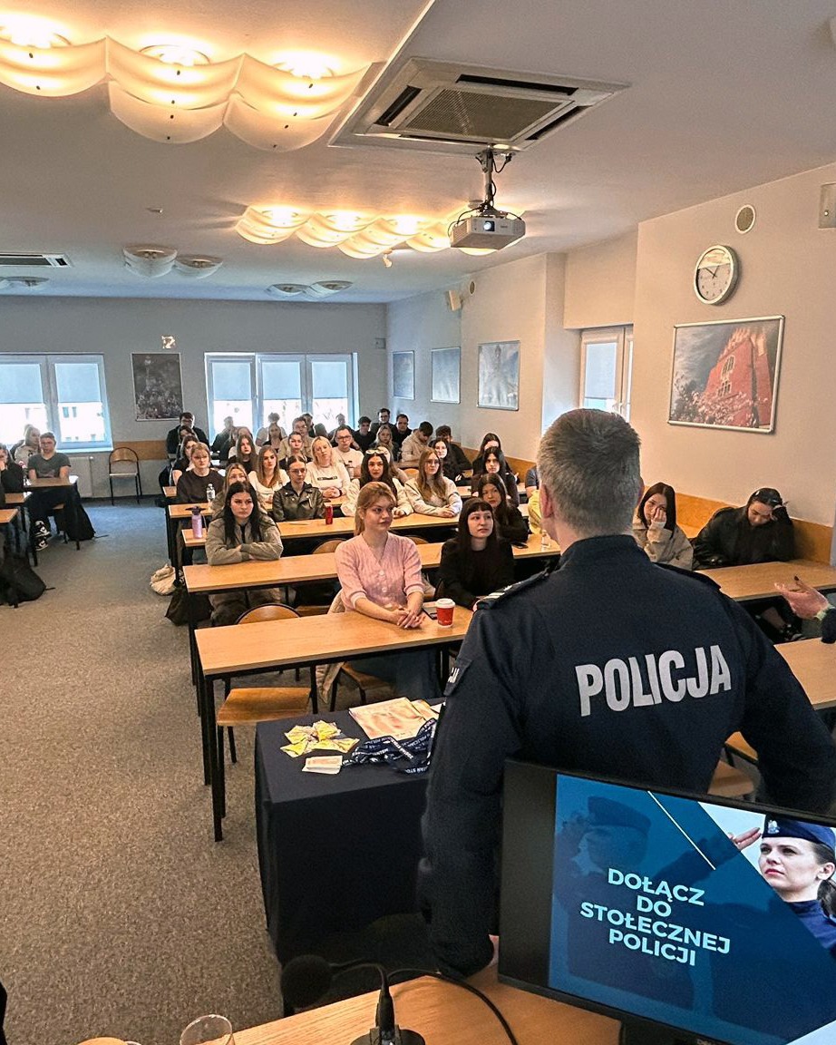 10 marca br. gościliśmy funkcjonariuszy Garnizonu Stołecznego Policji, którzy spotkali się u nas ze studentami, aby przybliżyć im specyfikę służby w stolicy oraz szczegółowo przedstawić ścieżkę rekrutacyjną.
